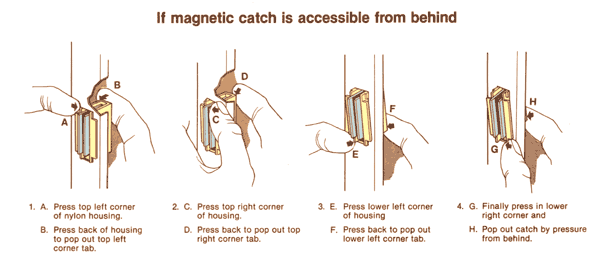 • Flexible magnets for small cabinets (kitchen, bath, office); 8-15 pound force.